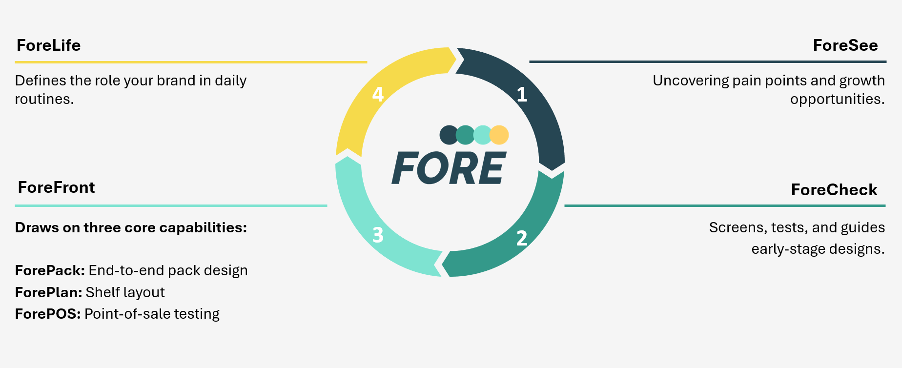 With experience across 18 of the top 20 global FMCG brands, the Fore team combines credibility with a fresh perspective on actionable insight. They help FMCG companies understand their customers and make confident decisions, blending expertise, technology and human judgment